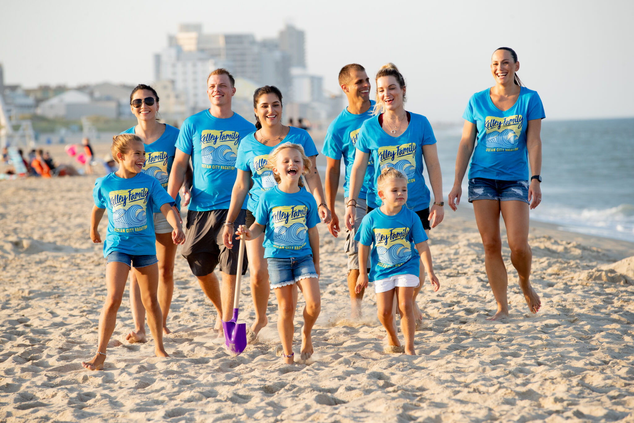 Our Names and Numbers feature lets you personalize each shirt individually. For large family orders spanning multiple generations, our Group Order form lets everyone choose their own size and style — crew neck, V-neck, tank top — while keeping the same design across the group.