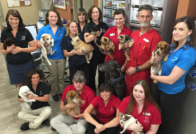 “The 2- and- 4-legged crew at Noah’s Ark Companion Animal Hospital in Franklin, NC are showing off their fantastic new Custom Ink shirts. Our Port Authority Ladies Silk Touch Performance shirts are much more stylish than our old polos. They’re cool, a great color, and don’t collect pet hair (added bonus when you cuddle furry friends all day)! Custom Ink’s customer service is head and shoulders above the competition and we all give a thumbs (and paws) up!” — The Crew at Noah’s Ark